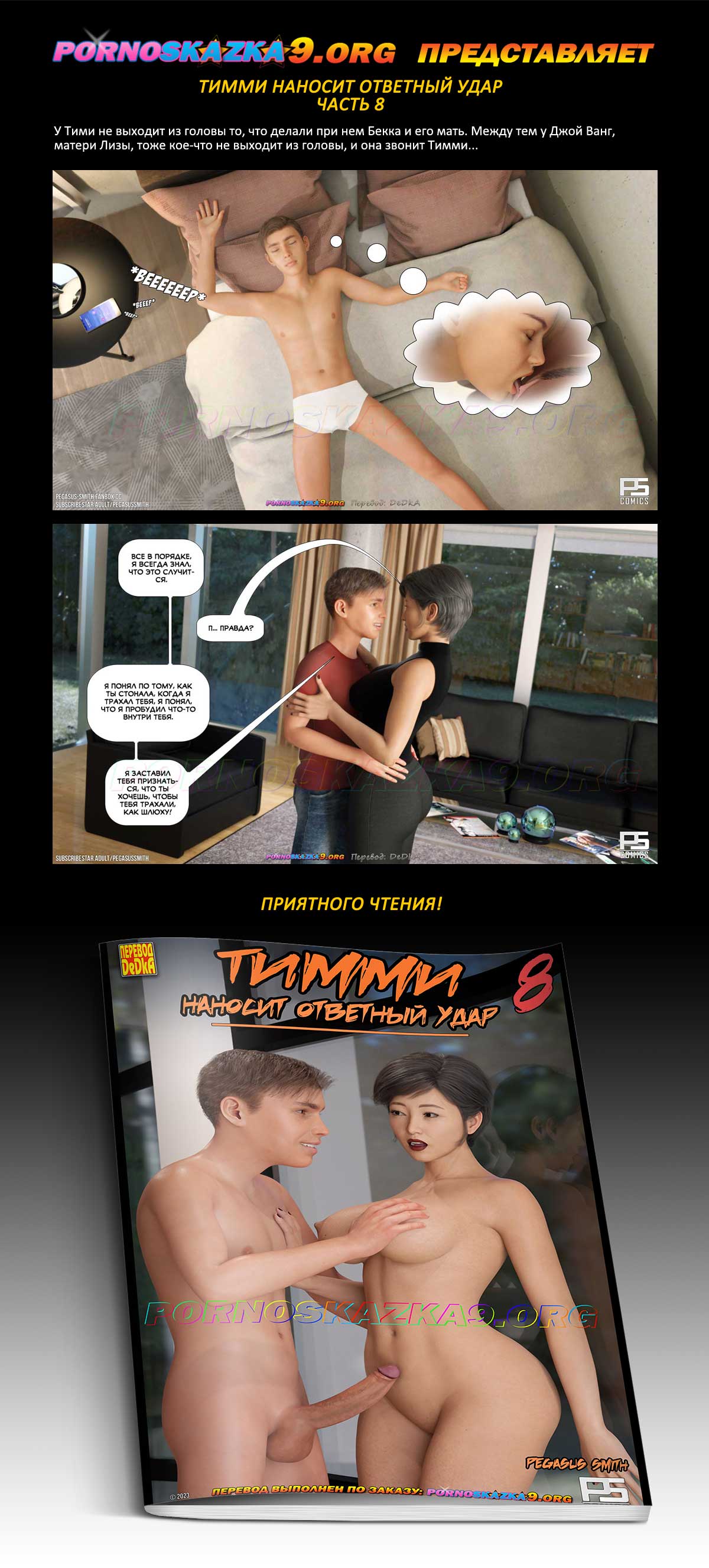 Порно комикс Тимми наносит ответный удар. Часть 8. У Тими не выходит из головы то, что делали при нем Бекка и его мать. Между тем у Джой Ванг, матери Лизы, тоже кое-что не выходит из головы, и она звонит Тимми…